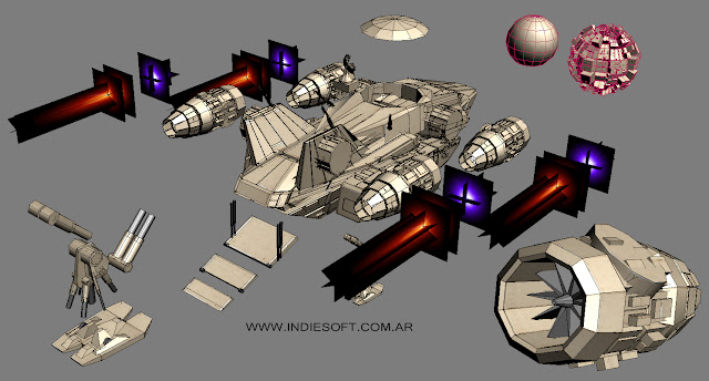 about the 3d models, i have a simple mesh, with a simple shape of a spaceship and i apply to that mesh the GREEBLE plugin for max i have some object childs, like engines, and the prop are childs too. in the spaceship, the shape of the spaceships are not important, only need to look's fine and that is the important, becouse i no finish the gameplay yet. ![]() http://max.klanky.com/plugins.htm |