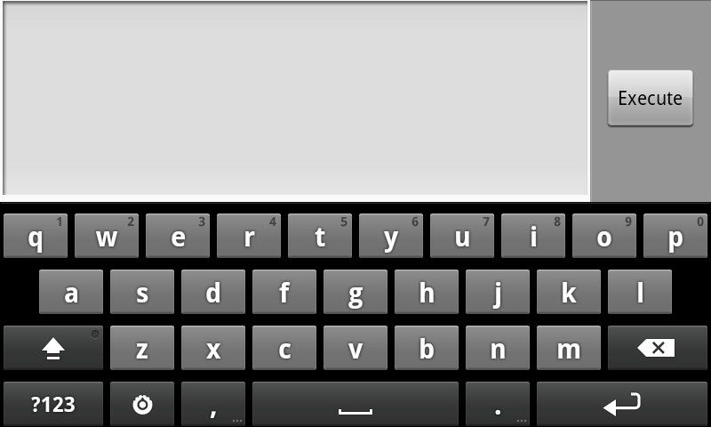 | The problem is top half of screen should have game on it, not big grey box with Execute button. Here is a screenshot of same app in portrait: ![]() Mak keyboardtest app has same problem on my ideos x5 phone when you tilt to landscape mode. |
